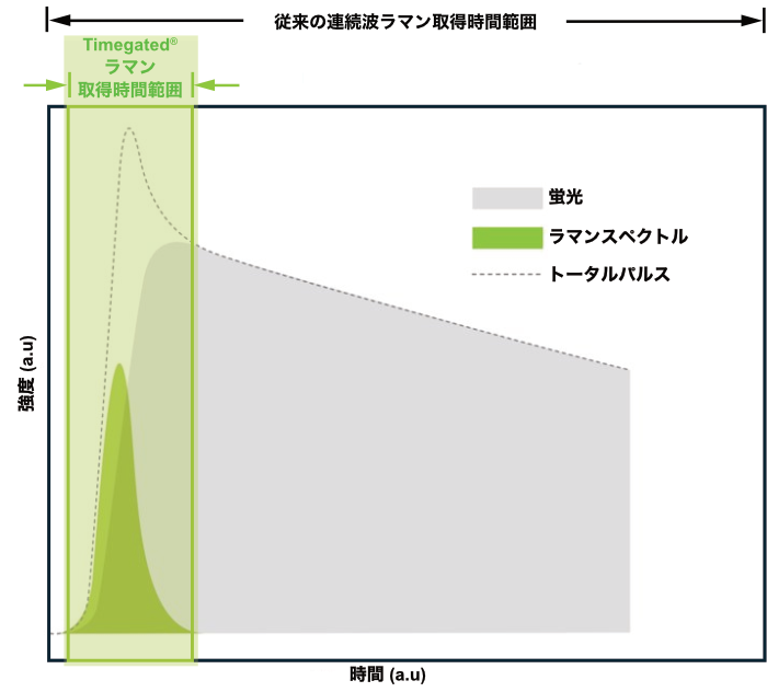 Time-gateラマンは、蛍光の影響を抑えた時間領域で、ラマンスペクトルを取得します。
